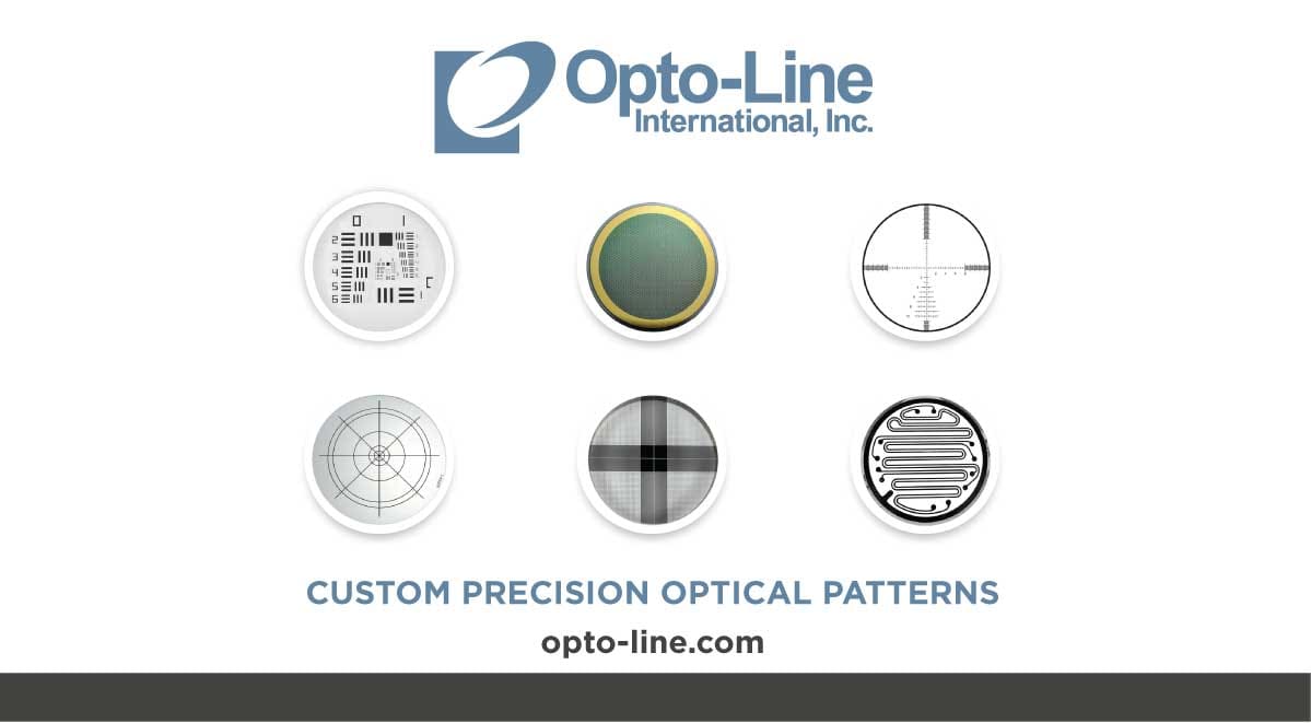 Precision Patterns Some examples of our custom patterning capabilities include reticles, resolution test targets, EMI grids, apertures, linear scales, and neutral density step tablets. Opto-Line can typically tackle any custom pattern imaginable. Thin Film Coating Combined with our specialized photolithography, Opto-Line utilizes thin film coatings to make your custom patterns. Our high-vacuum evaporation chambers provide […]