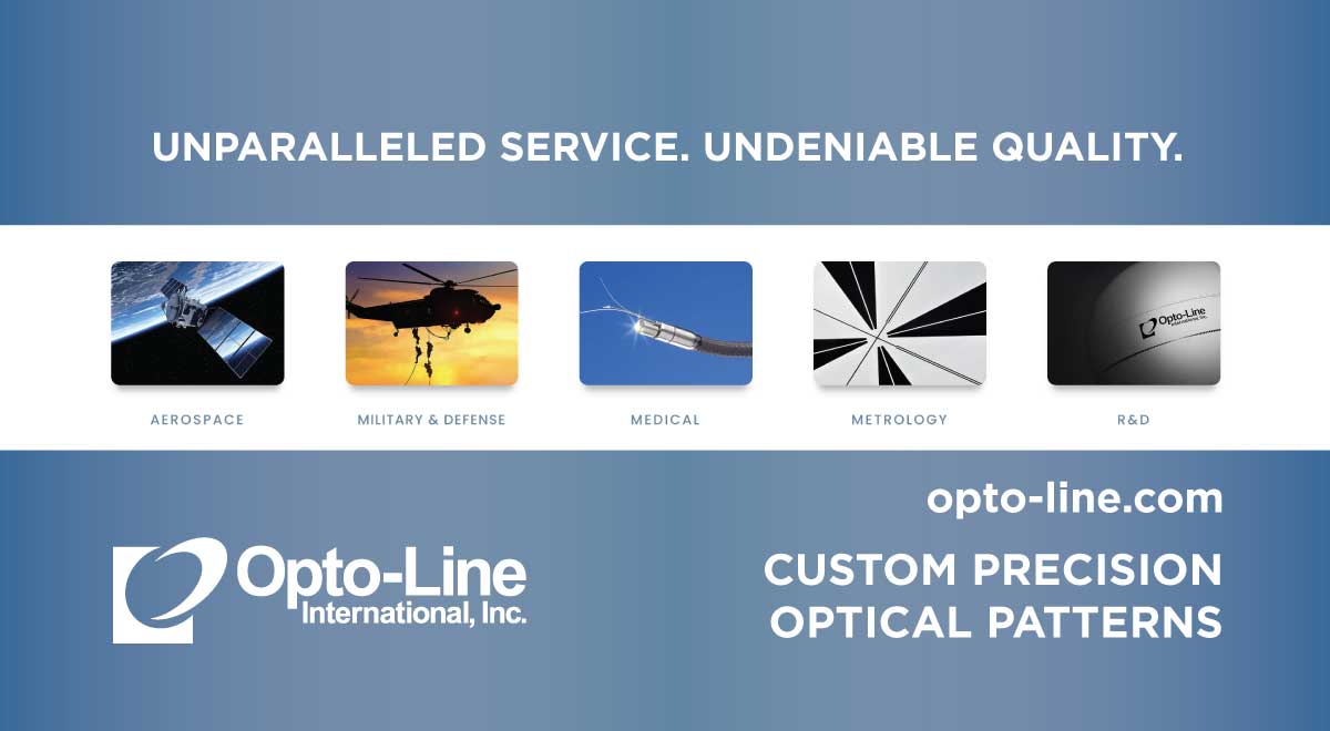 Opto-Line specializes in custom optical patterns and coatings to meet the needs of clients across markets worldwide. Our clients include, but are not limited to, the following markets: Aerospace Military & Defense Medical Metrology Research & Development